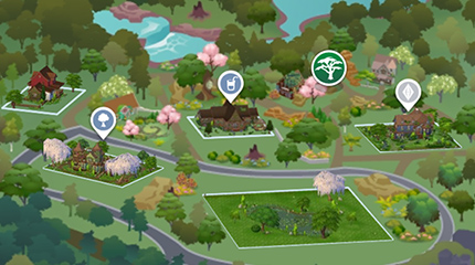 "Tento prázdný pozemek nabízí dostatek zdrojů pro všechny, kteří se živí dary přírody. Bujná zeleň vytváří obyvatelné prostředí, kde se Simíci mohou krásně rozvíjet. Ale nebojte, pokud něco opravdu potřebujete, v okolí najdete i pár místních obchůdků."