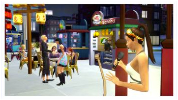 Část: 1 Život ve městě přináší novou dovednost zpěv. Když kliknete na Simíky nebo vybrané hudební objekty (třeba karaoke), můžete začít zpívat. |