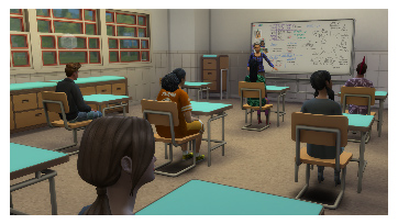 Část: 3 Ne všichni teenageři potřebují dokonalé známky, aby je škola bavila a aby vyrostli ve správné Simíky! I když je pro výuku určena pouze jedna třída (aktivní Simíci budou vždycky ve třídě 1), vaši teenageři se mohou věnovat také jiným aktivitám. Například mohou někde ve školním areálu pracovat na svých dovednostech. Pokud se ale vaši Simíci rozhodnou odejít během hodiny, dejte si pozor na ředitele, protože ulejvání se tu netrpí! |