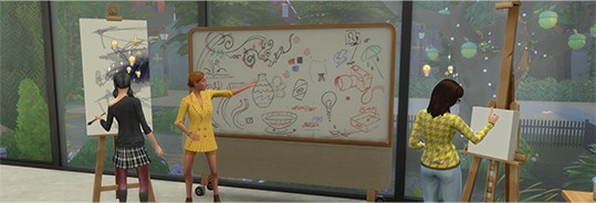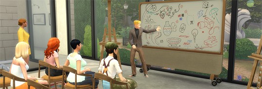 Část: 5 Když váš Simík do malého podniku dorazí v roli zákazníka, může se zájmového kurzu zúčastnit výběrem interakce Požádat o zahájení kurzu, která je dostupná na zájmové tabuli. (Samozřejmě to něco málo stojí.) Při zájmových kurzech se vašim Simíkům dovednosti zlepšují přímo rekordním tempem. Podle toho, kolik cílů dokončí, získají náladovky, které dávají malé, střední nebo velké posílení učení dané dovednosti, které trvá několik hodin. Existuje i několik způsobů, jak se Simíci mohou kurzů účastnit s doprovodem! Můžete z nich ještě před zahájením kurzu udělat skupinu, použít na Simíkovi interakci Pozvat na kurz nebo ho prostě nechat použít interakci Zúčastnit se kurzu na tabuli. |