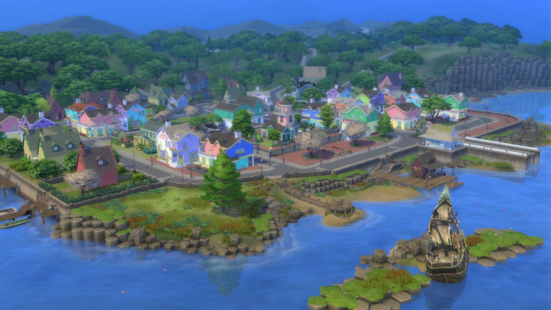 Pobřeží Adhmoru je sousedství v Innisgreen, tento svět je dodáván s Rozšíření The Sims 4: Kouzlo přírody.