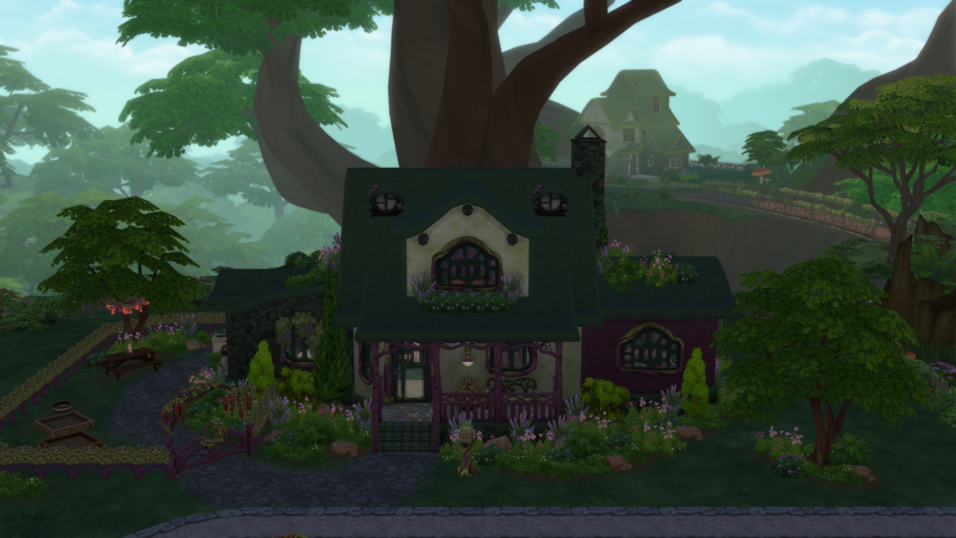 "Na okraji Rosova se nachází toto malebné obydlí vystavěné uvnitř jednoho z největších stromů v lese. Dechberoucí scenérie je ještě krásnější díky obyvatelům této čtvrti, které můžete zahlédnout, jak sesílají kouzla na okolní svět i Simíky v něm."