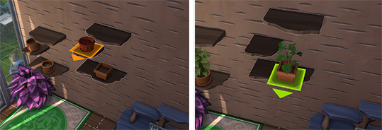 Část: 2 Simíci si mohou zakoupit živé pokojové rostliny a zasadit je do stolních květináčů, zahradních drnů a truhlíků. V režimu života vyberte prostor pro rostlinu a zvolte možnost Koupit živou pokojovou rostlinu.... nebo ji umístěte přímo v režimu stavby vyhledáním „živé pokojové rostliny“ nebo přechodem do kategorie Pokojové rostliny. Živé pokojové rostliny vyžadují méně péče než rostliny určené k zahradničení, ale nerostou a neprodukují žádné plodiny. I tak však potřebují určitou péči a mohou zahynout, pokud je Simíci budou zanedbávat. Lze je také očarovat, aby si udržely zdraví. Vůči bludičkám jsou imunní. Simíci mohou své pokojové rostliny pojmenovat a mohou se péčí o né i bavit - je to jako mít doma vlastního rostlinného mazlíčka! |