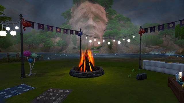 Sesedněte se u příjemně hřejivého táboráku a užívejte si. jak vrhá světlo na noc. Vyprávějte si příběhy a protancuje celou noc s ostatními Simíky! |